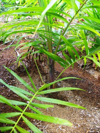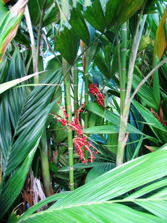 Areca vestaria red form. it is hiding in there behind the calyptrocalyx and lepidozamia.