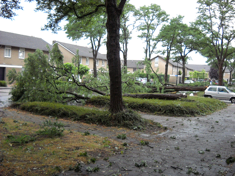 Finally it was nothing here, don't even hear a thunder only some rain, the most active part chosen to go for the southeast and east. The first pictures are coming in on the dutch weather forum from the southeast with lots of damage and also the first reports are 2 deads. On a camping near Doetichem caravans are blowing away into the water with people inside. The city Nijmegen don't have power anymore because there are some powerlines blowing down. Just over the border in Germany there are also some reports from possible a small tornado/turning wind gust that have done much damage and possible deads.