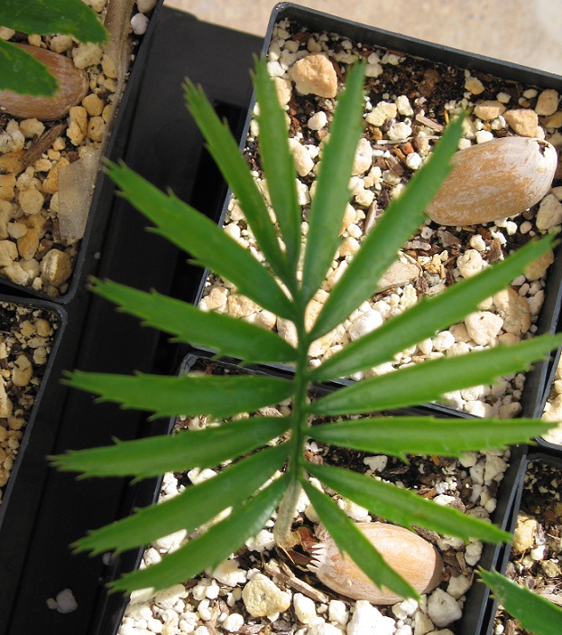Dioon califanoi is a rare bluish cycad from Mexico. These plants were germinated 02/10 and have showed fast growth! $25.00