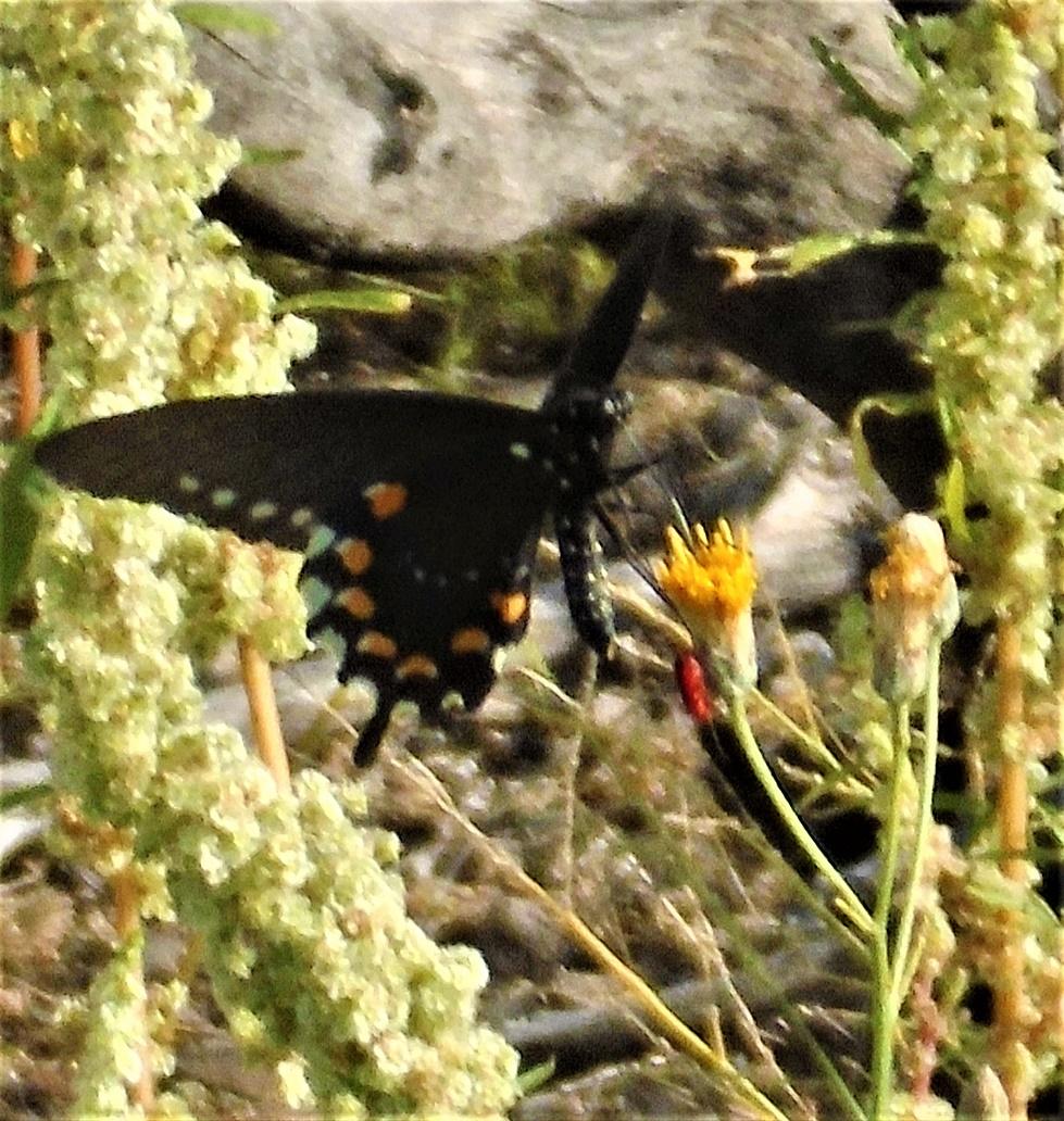 Pipevine Swallowtail w/ New World Checkered- Skipper ( Genus Burnsius ) to the right.