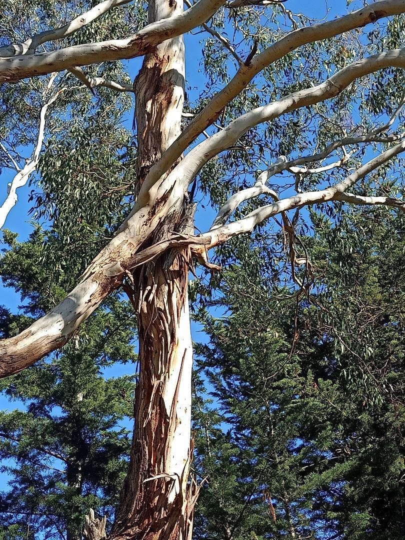 There they are! A nice pair of Tawny Frogmouths on their favourite Euc viminalis in our driveway. The bird on the right was in full cryptic mode but was watching us closely through a tiny slit of eye.