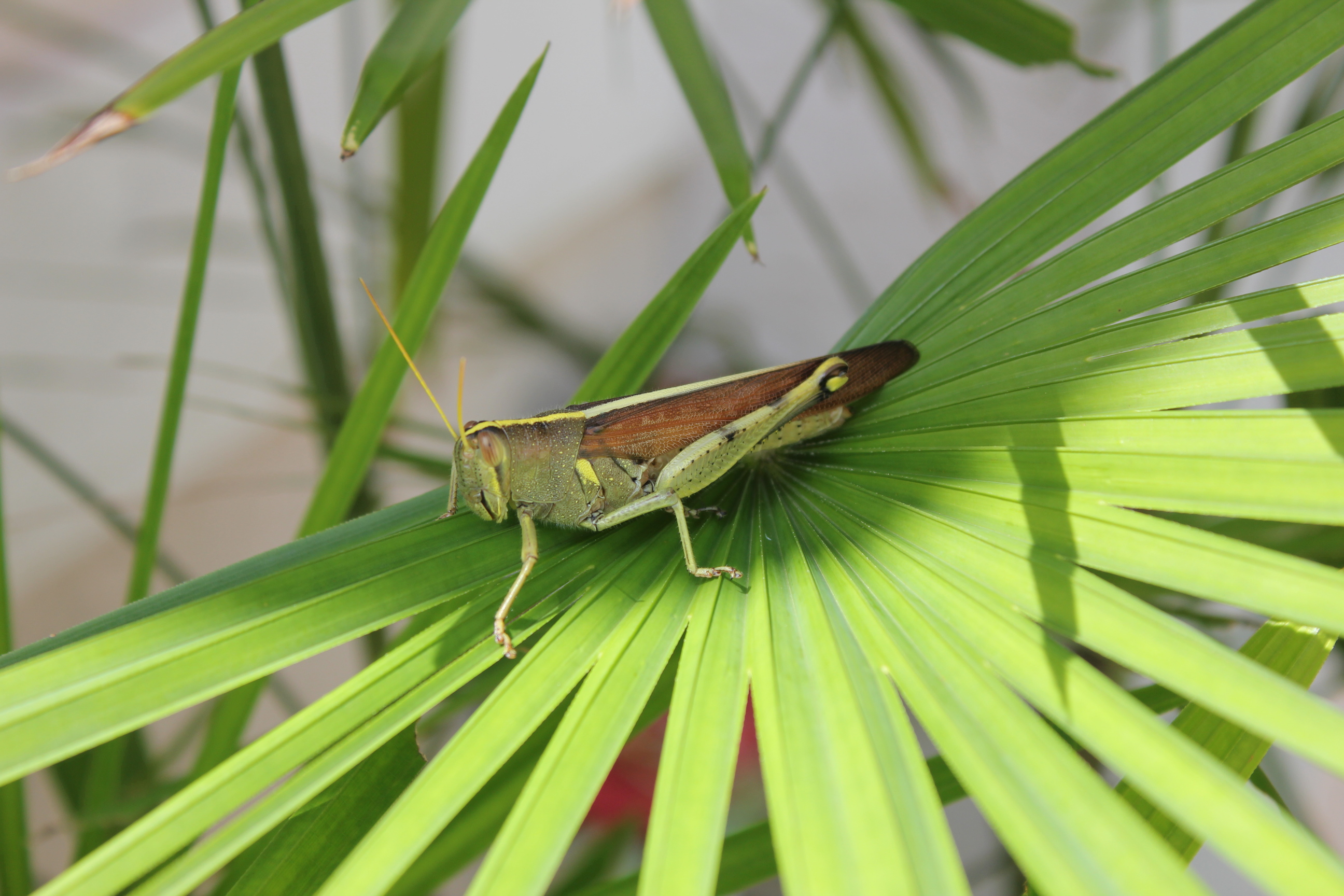 giant 4 - 5 inch grasshopers eating big chunks out of my bailey, gigas and some radiatas when ever i see one on there i crush them but cant watch 24-7 any thing to prevent them from having brunch on my copernicias? they dont seem to bother anything else palm wise maybe a radiata here and there but no other palms or plants yet thanks for any help