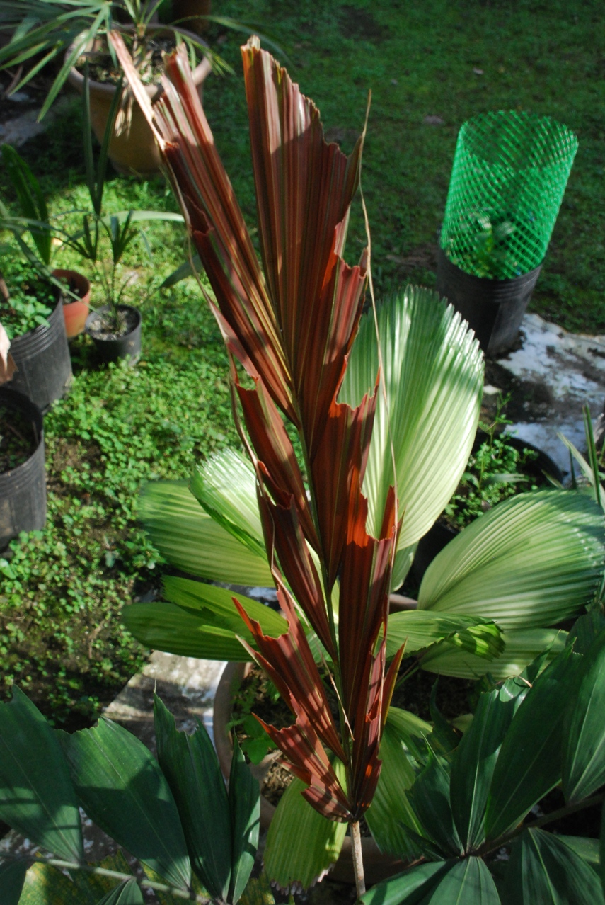 Ptychosperma waitianum. The first truly read leaf it has produced