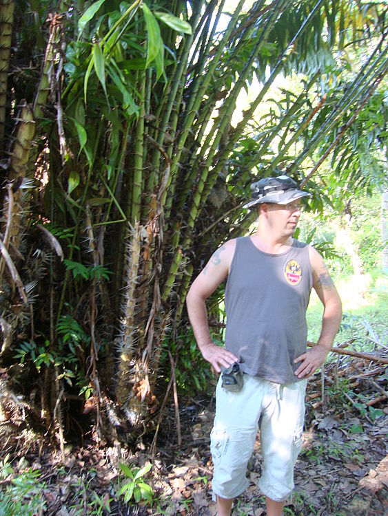 Stopping for a look at a nice Pacific Tall coconut
