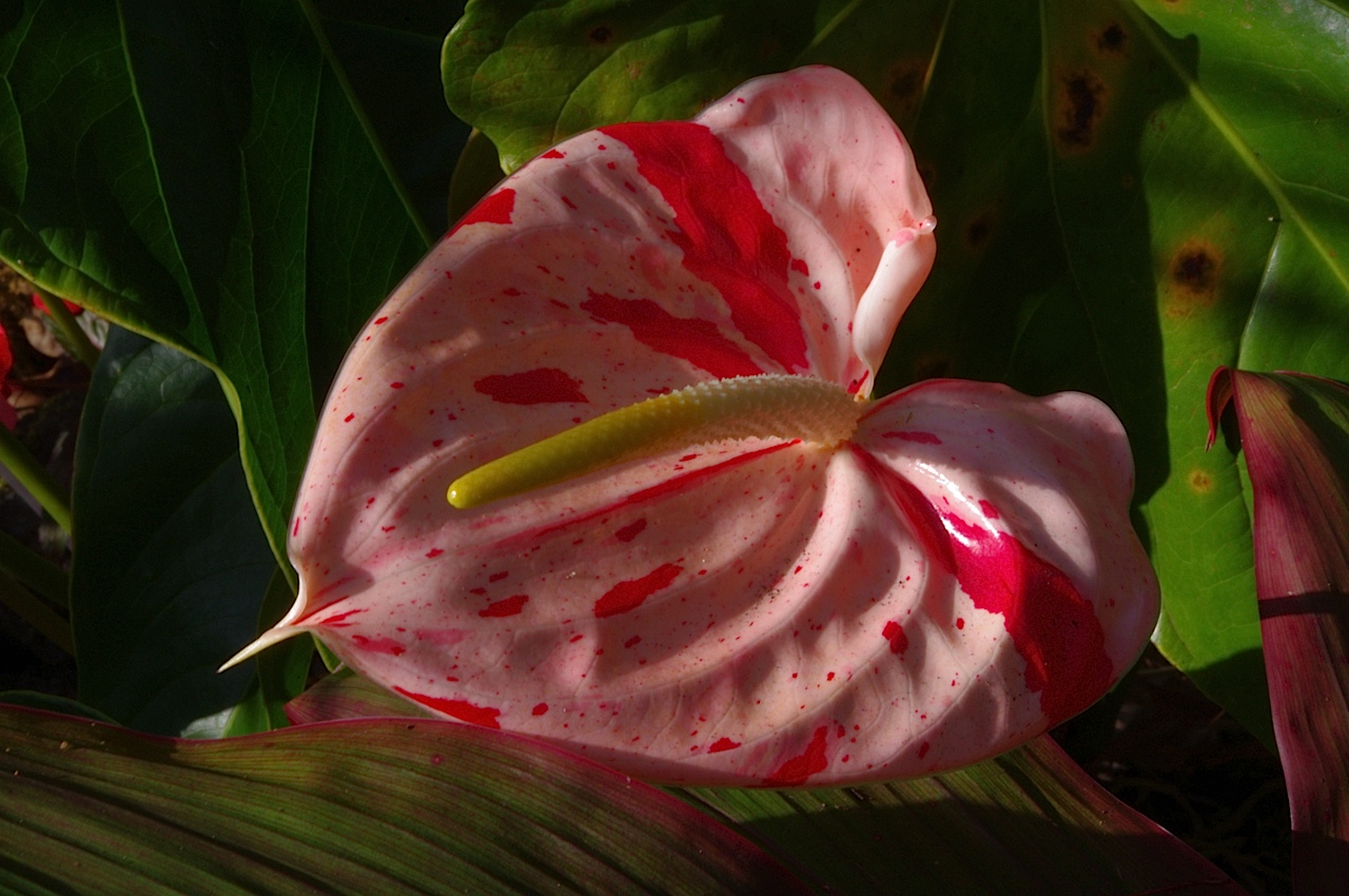 Here is a double anthurium "flower" followed by what I think is called "Sarah."