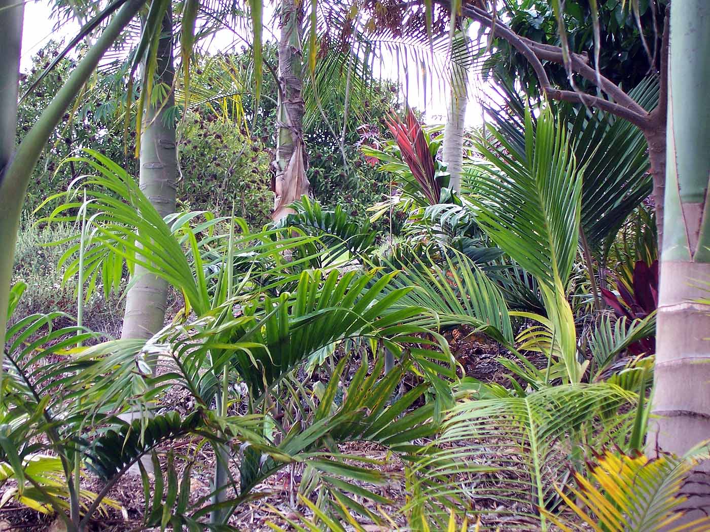 I think you might be joking, but I do plan on planting another layer once things get overhead. I already have 2 layers, with the taller, faster canopy species like Syagrus botryophora and Roystonea well above head now. I'm just starting to get my colorful plants in there, but it's difficult in this area because of the rabbits. I need plants that they refuse to eat, which I'm learning just by trial and error, or plants that can get up above 18" tall like Ti plants.