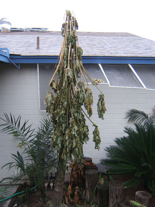 One fruiting banana dead. It was dying anyway since it had fruited, but this just finished it off.