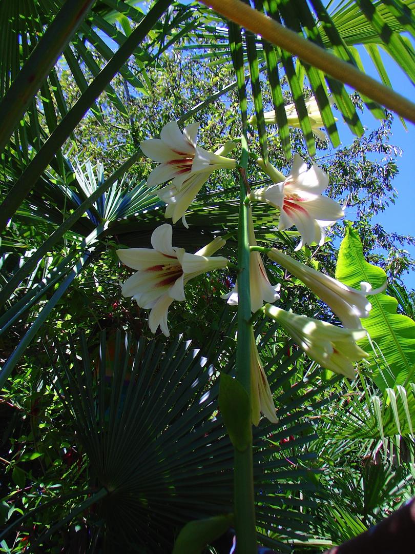 Here is the tallest one at 9’ tall and growing on the shady side of one palm.  Evening fragrance is really sweet. Thanks for looking.