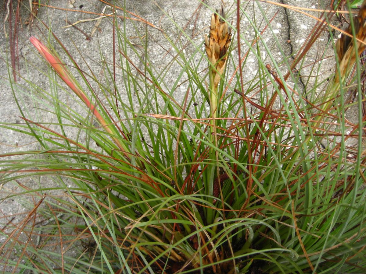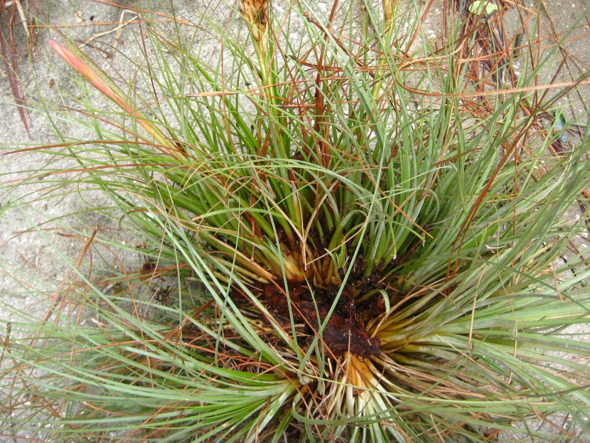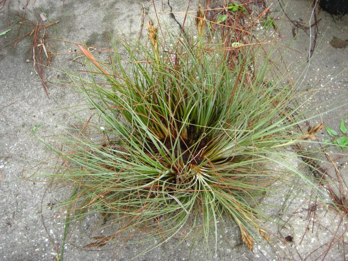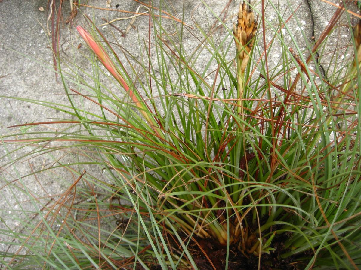 The area around Kissimmee seems to be the home of a hybrid swarm, with those two species and T. fasciculata interbreeding rather freely.  In this area the 1989 freeze killed nearly all epiphytic specimens but those that rooted in the sandy soil fared much better, probably due to residual heat of the ground. T. setacea, abundant several years earlier, was almost gone.”
