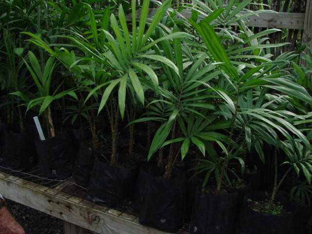 As we enter the shadehouse, Dial kneeling with some of the palms