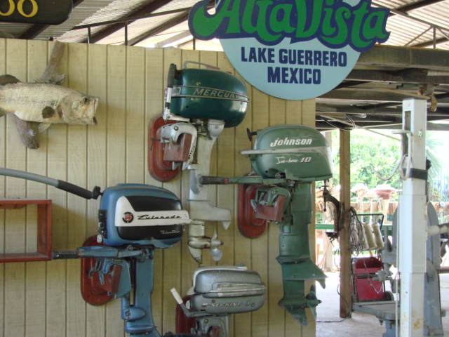 decorations in the boat barn, Dial has a huge extensive collection of old outboard motors, and the majority of them actually work!