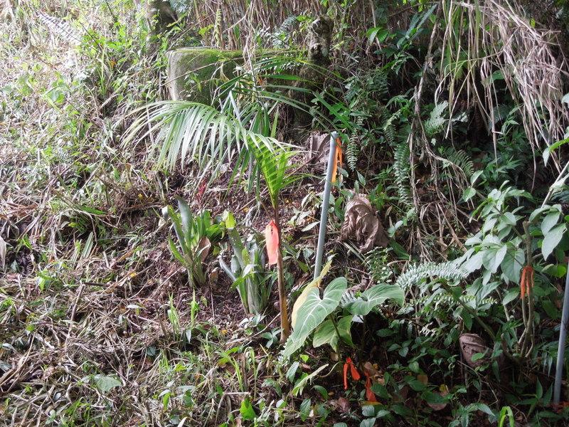 These photos show my only Euterpe edulis 'orange crownshaft'. Look hard for the silver measuring stick by enlarging the photos to get some idea of size. This one has been in the ground 3 years and has recently picked up speed.