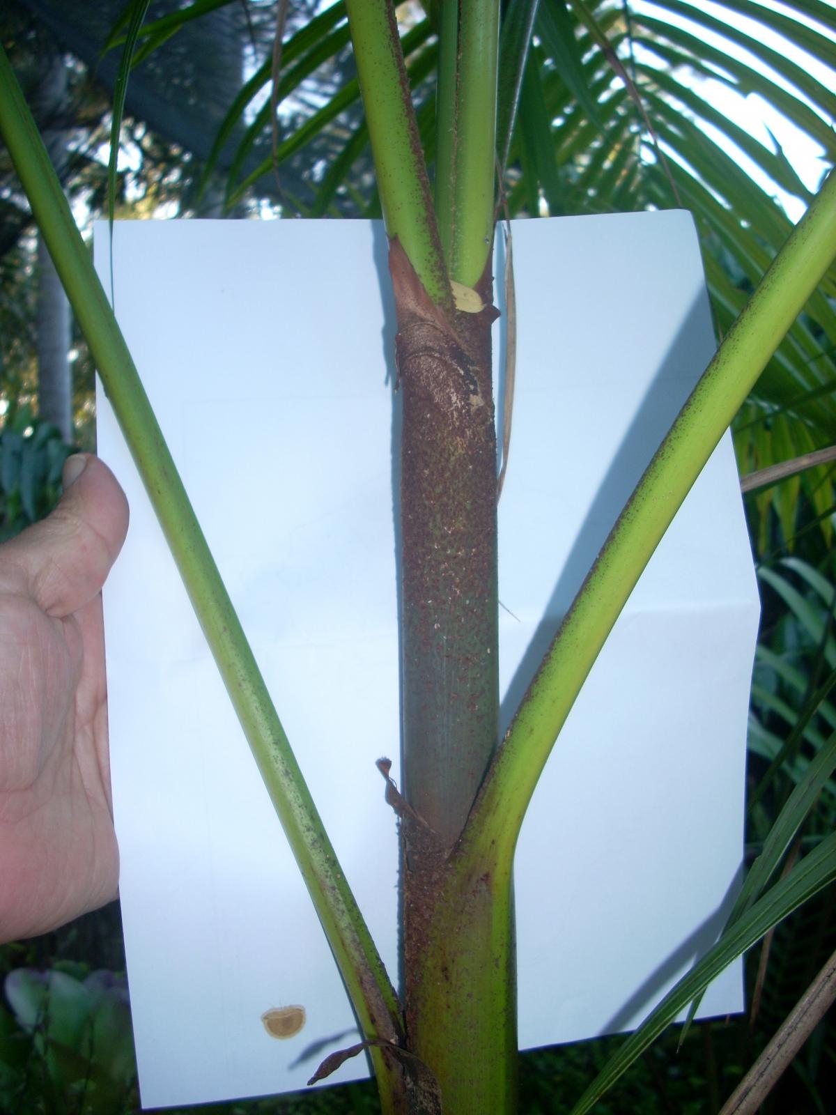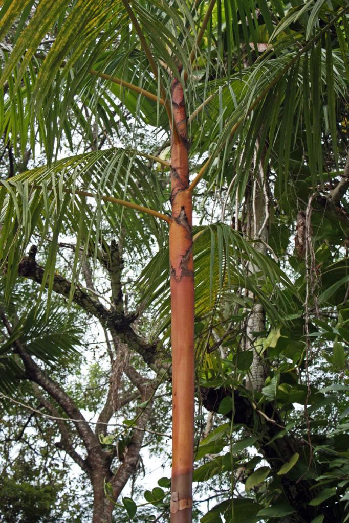 Peter this is today this had no color at all until it was at least a 5 gal. plant 3 to 4 feet and just a little color. It didn't show much color till about 6 feet in the ground . It was sold as euterpe sp. orange crown shaft. It still has the red tomentum.
