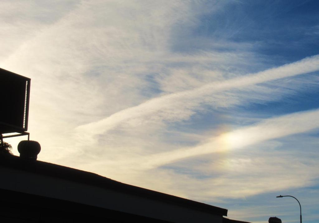 Mid Day " Sun Dogs " Parts of a 22deg Halo visible as well below the sun's position in the sky.