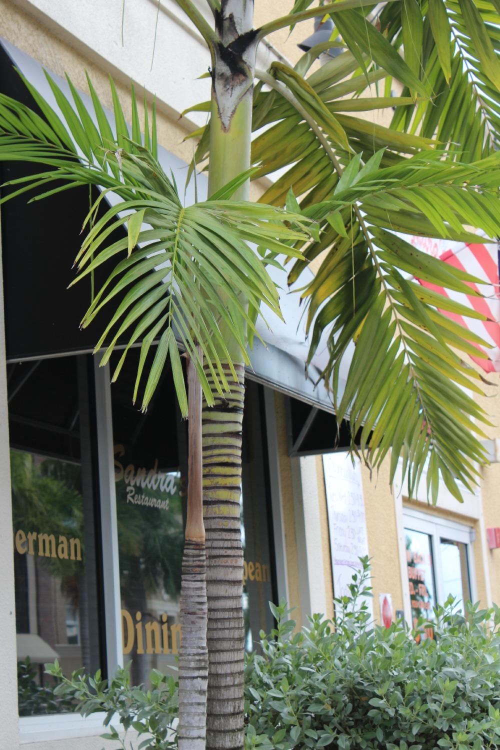 I saw it while out today and it looks totally different than any of the palms around. The fronds are amazing, then it has a very beautiful set of stripes.It is solitary, the little one next to the big one is not connected. I couldn't quite determine which species this is, cause it looks like several. Anyone know?