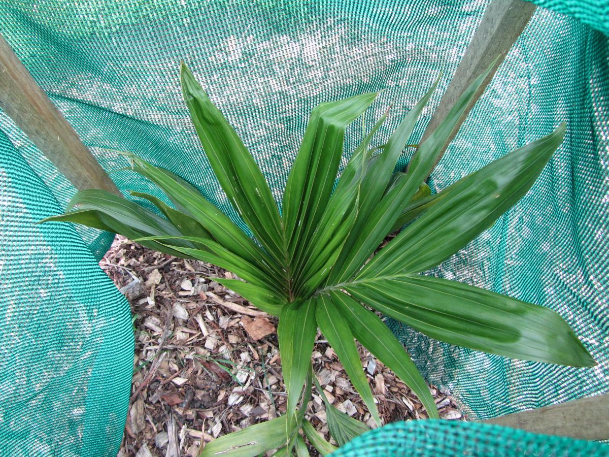 Hedyscepe that i grew from seed in the gardens Nursery waiting to be planted out . I also have another 15 species i have donated that wil be planted oiut in the future !