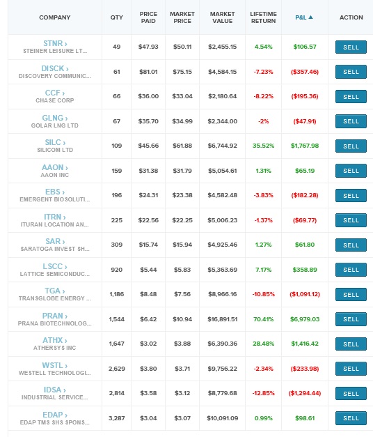 Here are how the others in the Random Garbage Index are doing. SILC and ATHX have also been hits. There have been some serious downers in the mix as well, bu the random ups have offset the random downs with a little to spare.