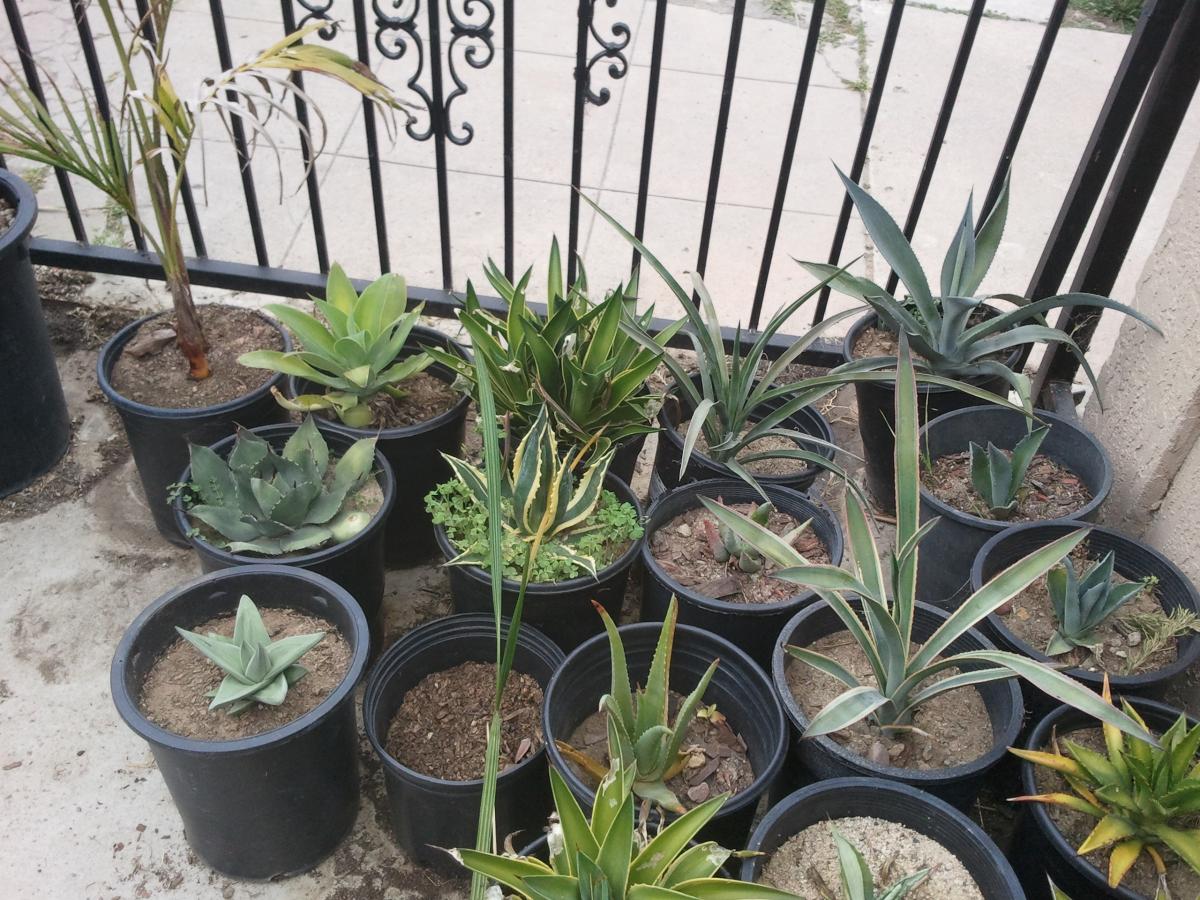 The Cordylines eventually declined to a pest of some sorts. I feel that I may had been giving them too much water. They came in a decent sized 24" box from a grower in Escondido. The Agaves came in a 15gal tub. After over a year of heavy watering, they grew to nearly twice their size. At this point they became rootbound and flowered.