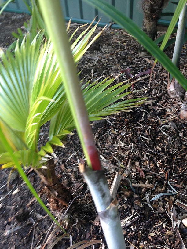 Here are a couple of pics of what I believe to be a dypsis albofarinosa. After a fair bit of rain the new spears seem to have a red tinge which I have never seen before.