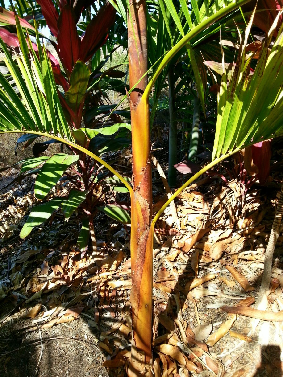i believe the other orange crownshaft Euterpe species are catinga and espiritosantensis and both are significantly less cold hardy. a regular edulis is pretty green so Matty's should be the edulis "orange crownshaft" variety, i recall reading of a few others in socal. LilikoiLee's are absolutely beautiful but hard to tell if it's the E.edulis orange crownshaft or E.catinga since in her climate she can grow both. mine's slowly starting to show some color and has always been kept outdoors. If you find any for sale let me know, i'd love to pick up an extra or 2 for spares