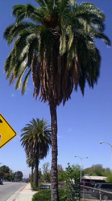 Wow, thanks Tank. I didn't know that phoenix dactylifera could have a trunk like the one in photo #1 (in front of Maude's cafe) with all of those leaf bases all the way up the trunk. I always seem to see Dactylifera with the bootless trunks, like the tall ones planted around Town of Tioga, for example. A "bumpy" trunk like post #2 is what I think of when dactylifera comes to mind.