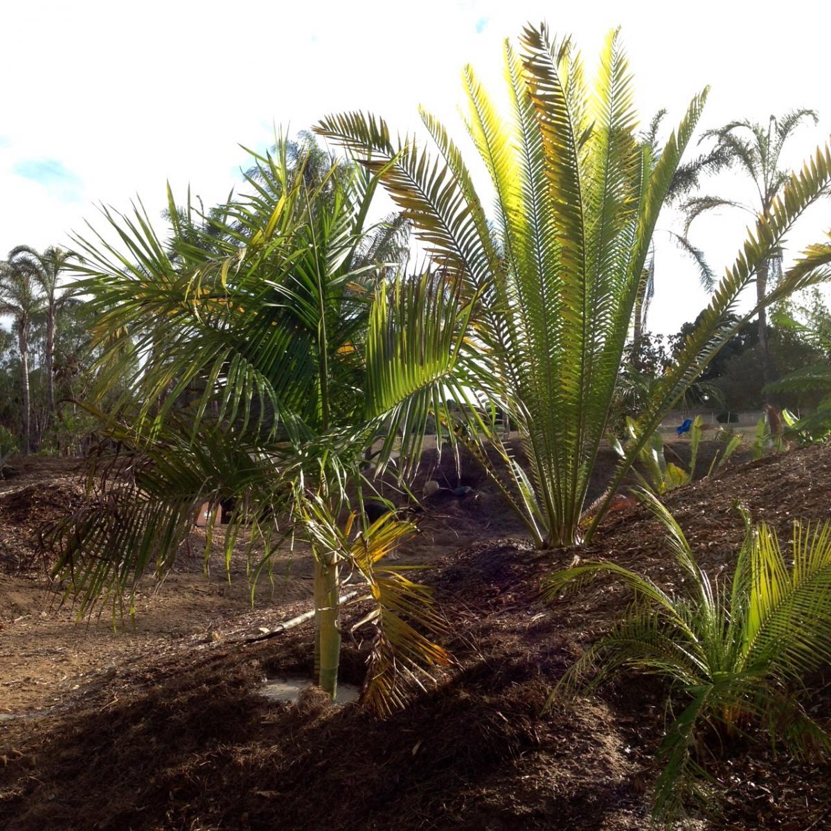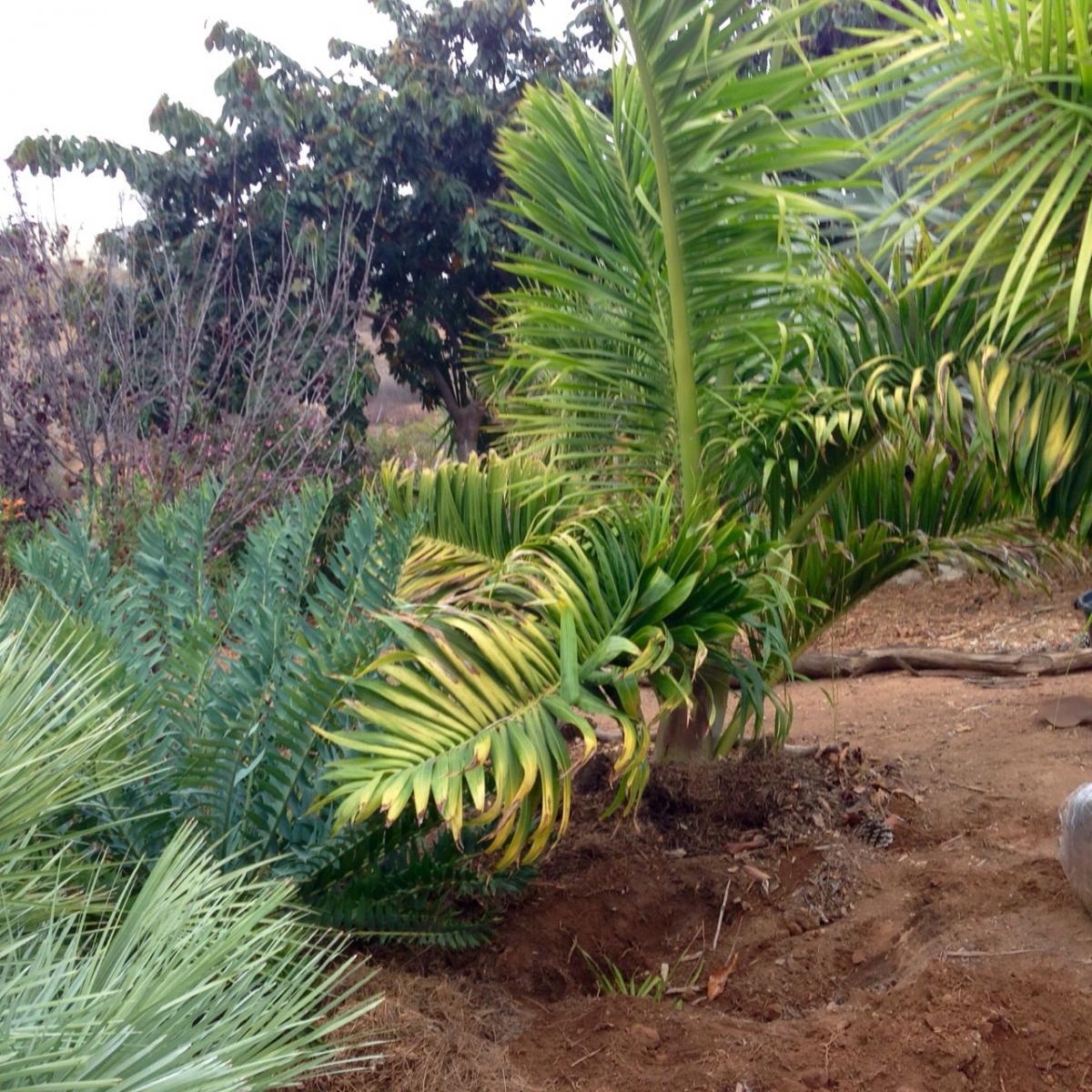 Nikolas just dug it up and we hauled it up the hill in my 4x4. No pics, sorry. Maybe he'll take some after pics at his place. It's always a learning experience when you get down into the soil and see how a palm is rooting and see how your watering regiment is doing. This palm gets water once a week, on drip, 8 gallons total. It got watered on Saturday, 8 gallons, and here it is only Tuesday and it was only moderately moist down there. Certainly not wet. Amazing how well my rocky soil drains and wicks water away. Also, it goes to show you that a palm can thrive in soil with a lot less water than most people think. The aeration is just as important as the water. I think people forget that.
