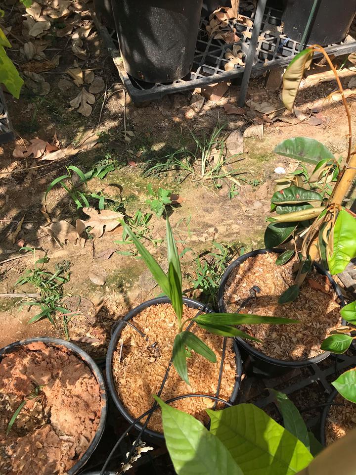 and 2 of my dwarf Acai palms behind it to keep the soil well drained, the more plants the less water will