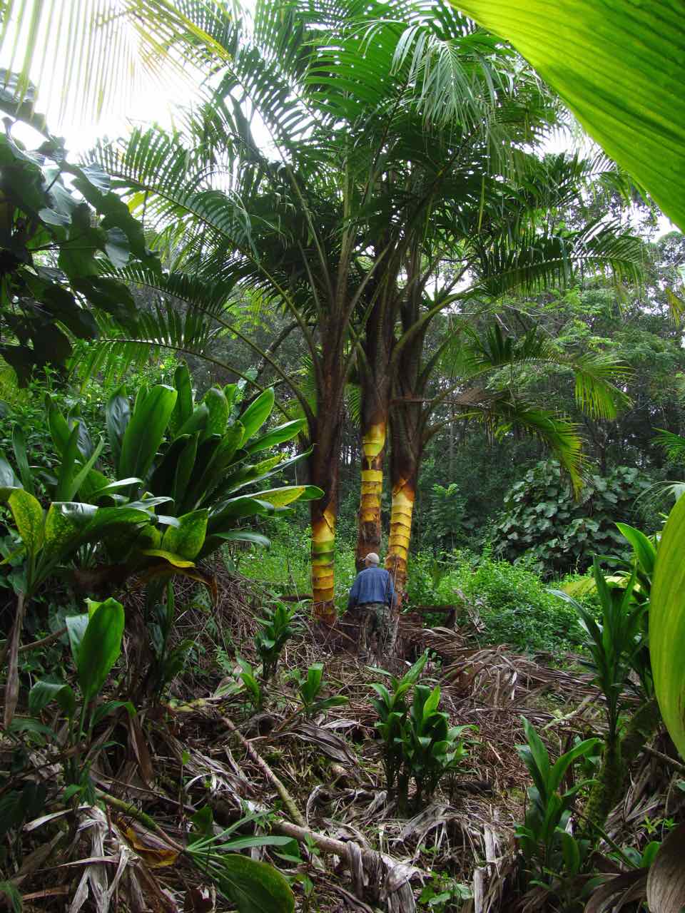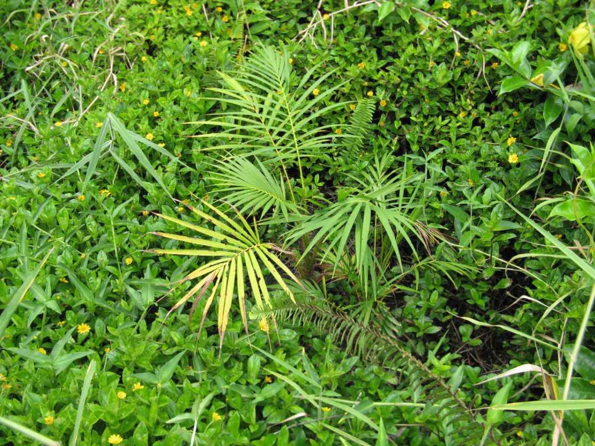 Kind of a sequel to Clino Dave's thread, only the 'other' species, P. elata. These palms are monsters and so successful at colonizing disturbed forest areas because of their fast growth. The 'scale' thing will be clear in one of the last photos. These things are so finicky trying to transplant, I just cut the bottom out of the 1 gal. pot and just set them on a mound of soil. They are planted in the open space behind the house, just too large for the rear yard and didn't want to mess with the frond drop. These were germinated in spring of 2010 and stuck out back in late fall. Not much taller than the ground cover.