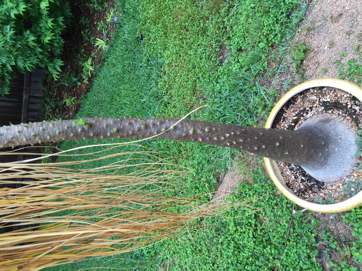 We have a ponytail palm that was left outside over the (somewhat mild) winter in Austin, TX. The trunk was wrapped in a blanket. We thought it had died, because the top had turned brown. I discovered yesterday that it is sprouting out all over the trunk (but not the ball). See attached photo.