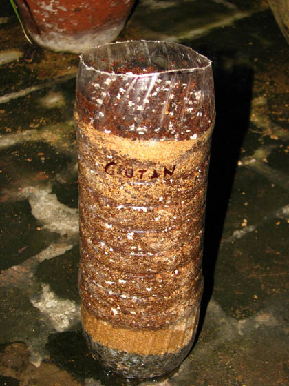 And now lets have an arieal view of this Buri palm seed seated in the plastic bottle...