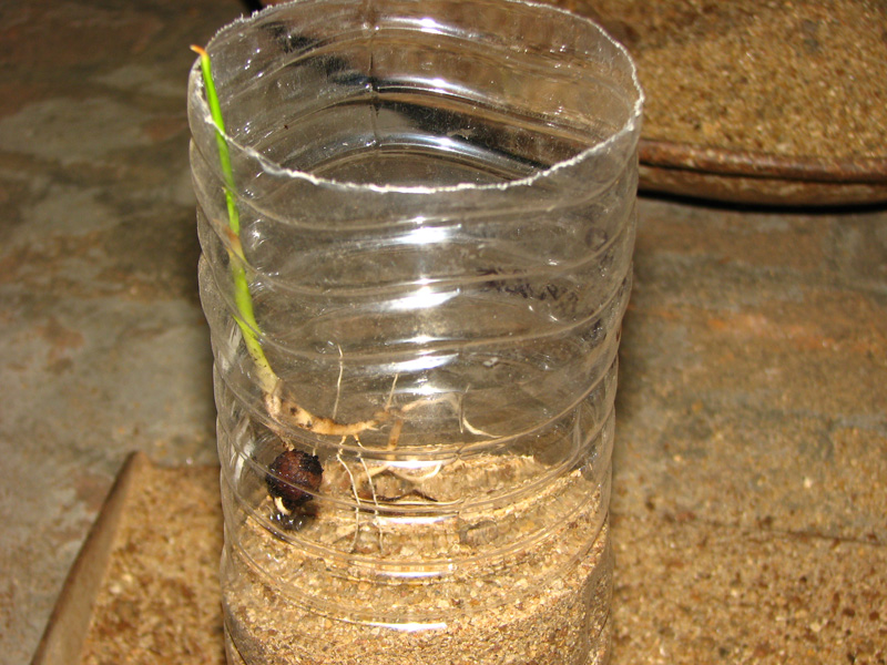 i must bring to your notice that more often my palms saplings get killed by squrieal attack.so at times i have plastic bottles with soil and no plants in it.i have reused it.so that it gives me addition space to walk around...since so much bottles are filling up..!