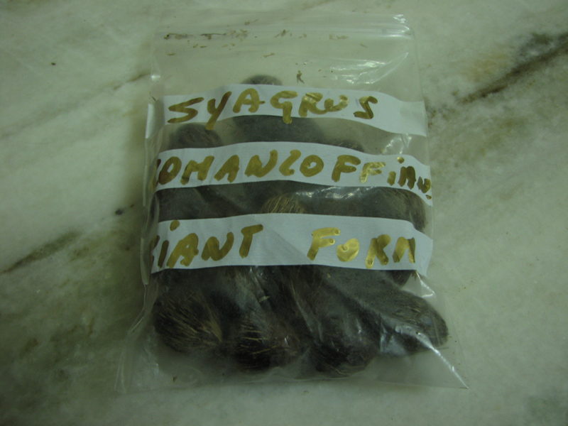 1. Received 10 fresh Tahina spectabilis seeds in the mail on Thursday Feb. 28, 2008. The seeds had become available on RPS' website: www.rarepalmseeds.com on Feb 16,2008.