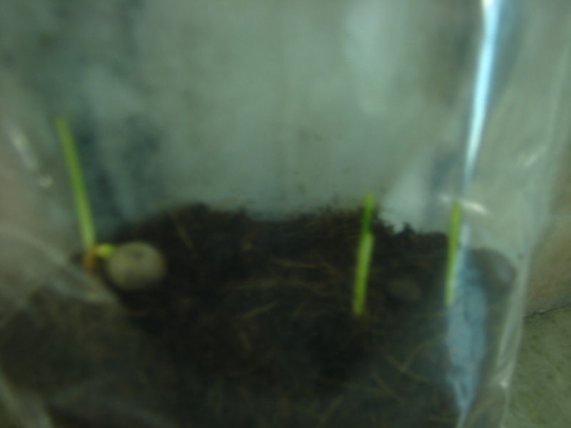 in the left overs i found 3 just germinating and one well germinated with no top sprout yet...so they will be,once again put in a new baggie bag with the same medium as done before !  :D