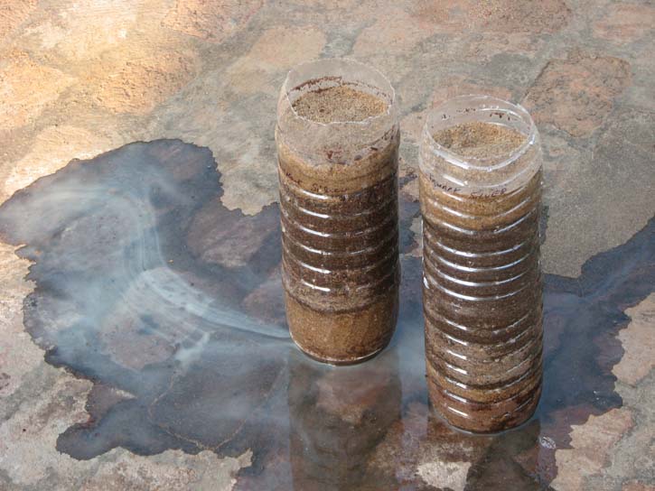 seepage into the soil medium,coating the seeds,the coil fiber in the bottom,we water it till the drain water comes with trace