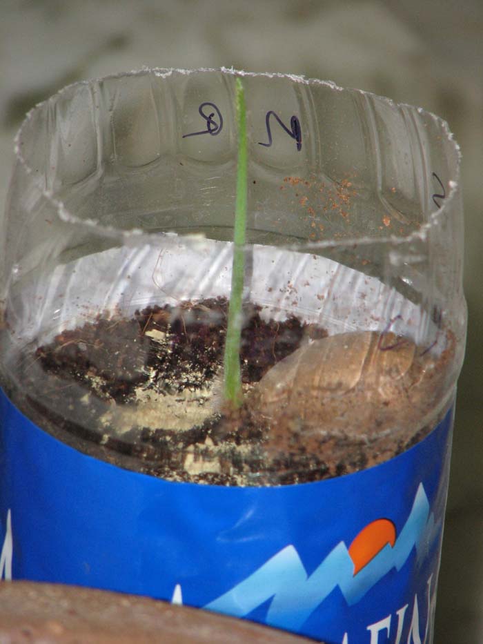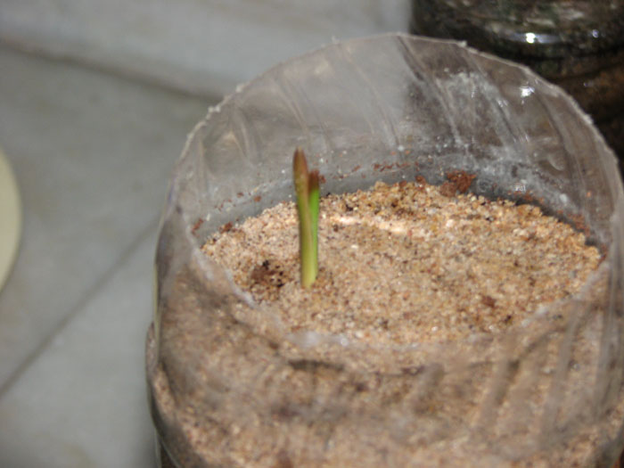 some good news to you all that the 2 bizie lady seeds that were placed in the plastic bottles have sprouted and here are the stills_iam doing this just to encourage you to try this at your home for your home garden requirements.