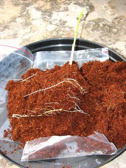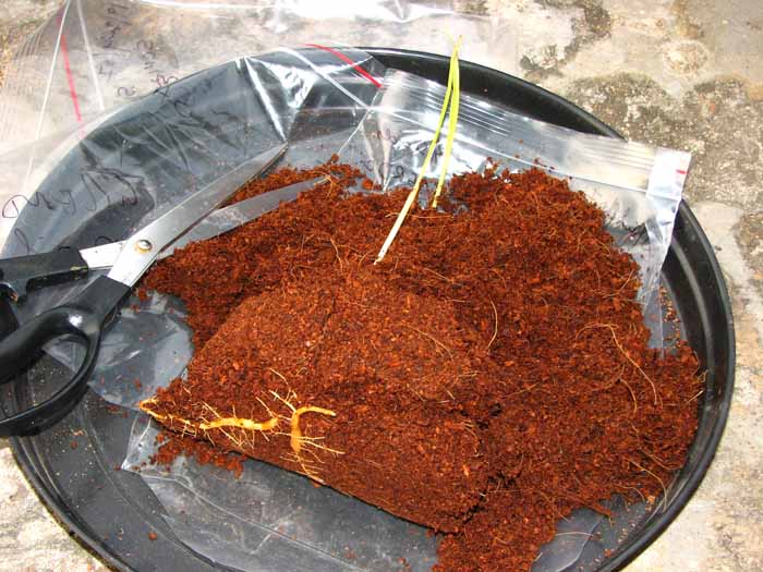 Now those seeds that are still sleeping are reused by placing them in the same coir derived from the cut away baggie bag..