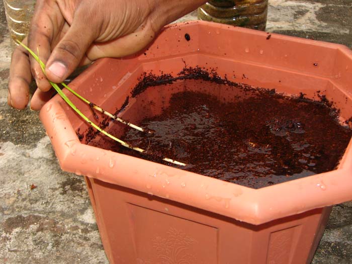 After allowing the sapling to air dry say 1 to 3 minutes for the excess water to dry,now take this sapling to a temperary