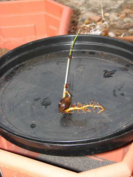 Where I might differ is the next step...........instead of waiting for the first leaf to work its way all the way back to the top. I might check periodically in the early spring to see if the radicle has received the endosperm (the bulge) If a bulge or endosperm is noted, I will pull apart the pipe and let the perlite gently fall away. Then I will plant the endosperm just below the surface in its final position.