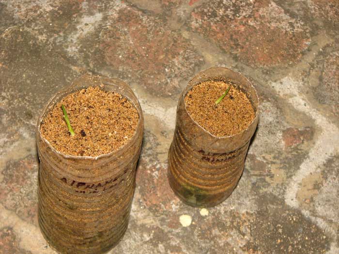 Now the 2 sprouted sabal texas(Mexicana's) are bottled up with a course sandy medium with trace amount of perilite course grade..!and watering is done gently so that only the top 2 to 3 inches of the bottle soil medium get wet and this is done using a hand held shower can..