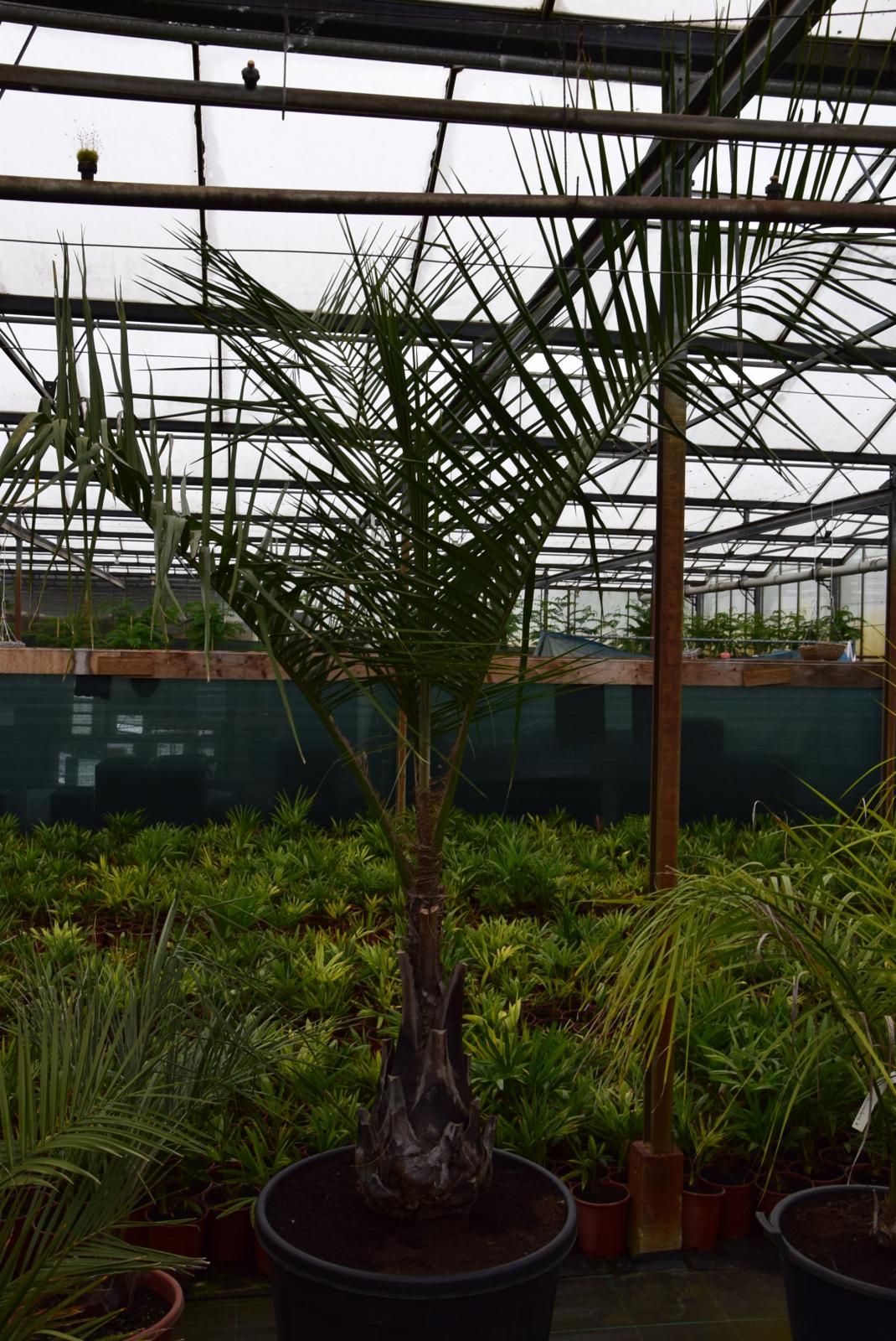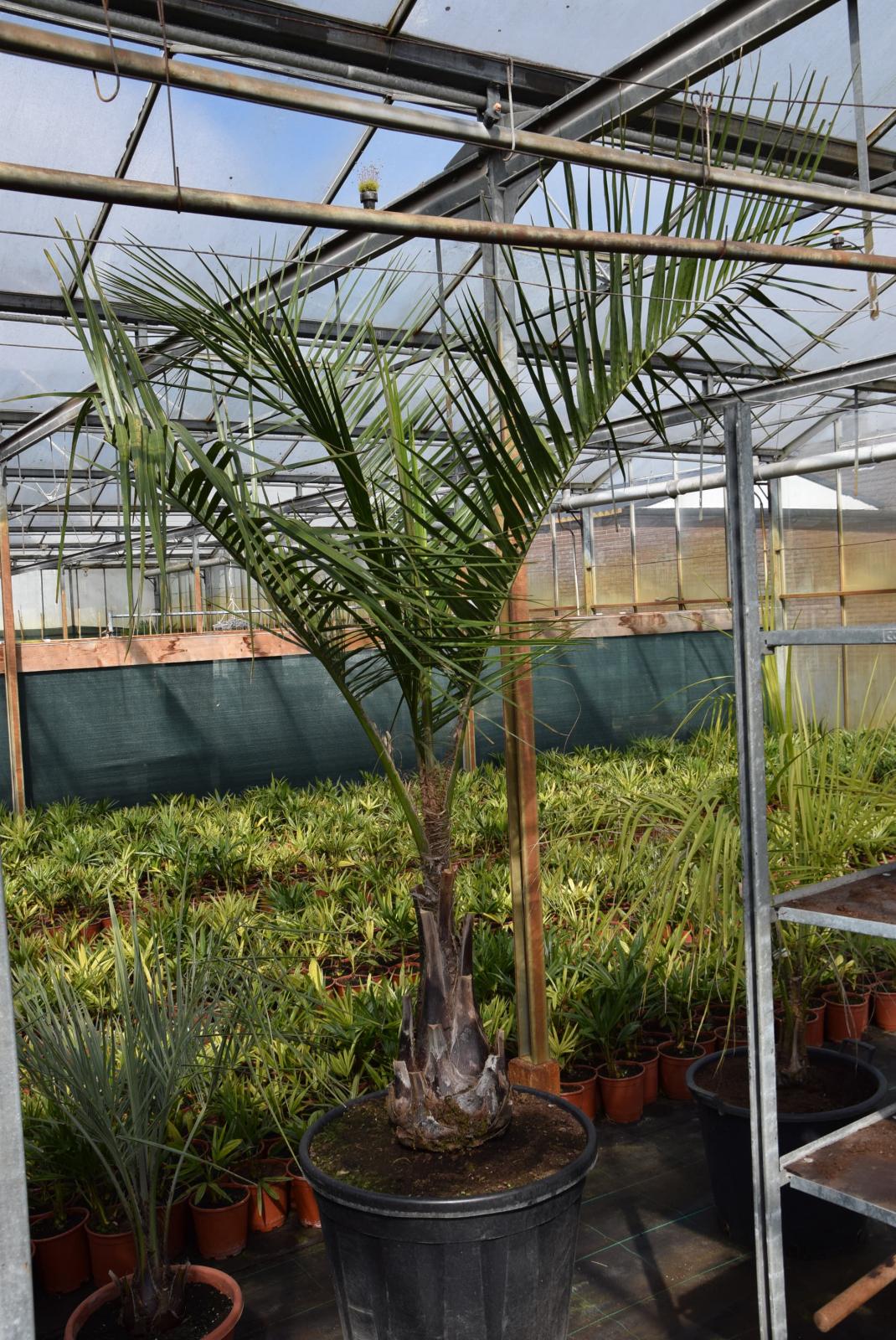 The story behind this palm is as follows: I bought this palm in horrible shape (almost no leaves in a very small container with a huge infection of scale insects) from a Dutch company that didn't know anything about palms. They had shipped a container filled with palms from portugal because the palms were left on a property that they had bought.