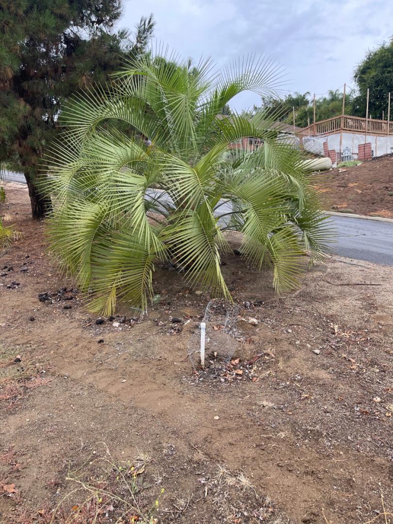 And here is a Patrick Jubaea x Butia for comparison.  I bought this as a liner in March 2019 and planted it in November 2020.  It has grown a LOT since I put it in the ground, substantially faster than the JxB and BxJ from Patrick that are still in pots.
