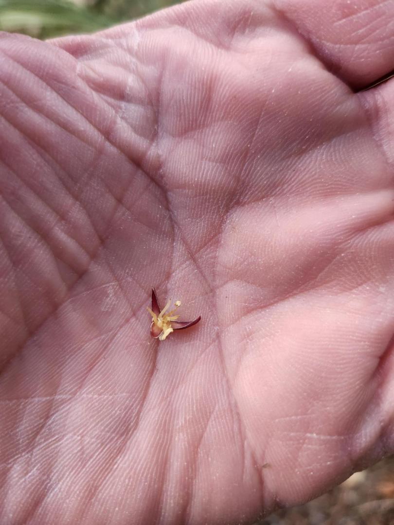First spathe opened today, with most of the male flowers dropping off.  By my analysis only 6 stamens...and from what I'm told that means it's definitely more Butia, at least Butia on the mother side and not Jubaea, as the latter would have 8 stamens or more.