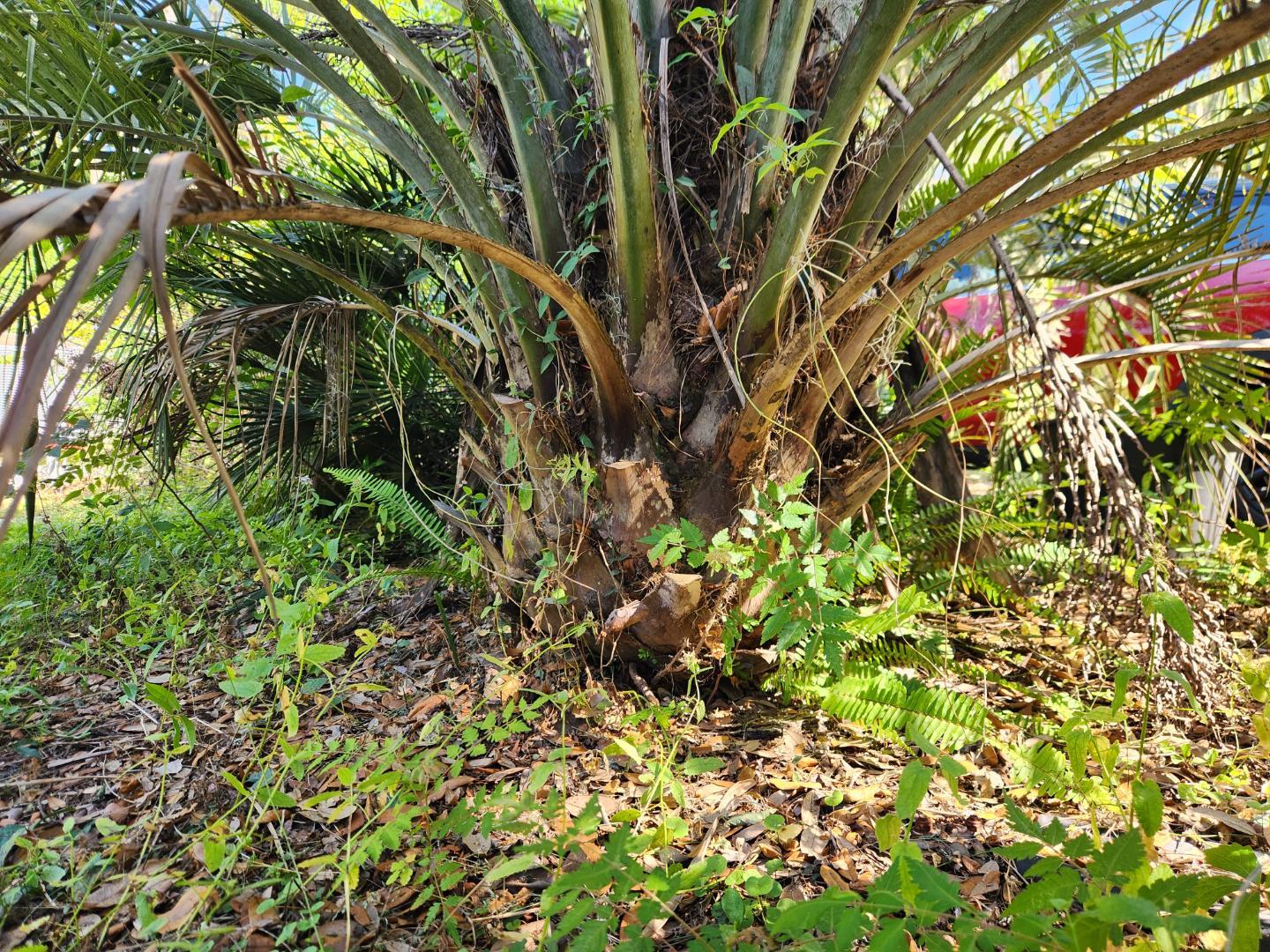 I am surprised this Butia is flowering even before it has a trunk, I suppose climate has everything to do with it.  My neighbor has a 43 year old Butia with trunk and it flowered for the first time last year.  Unfortunately for the Butia it was planted too close to a CIDP which is now shading it.  Pictured in forground.IMG_2398.thumb.JPG.d2279f892a5172ac01c79f2e6625ca8b.JPG