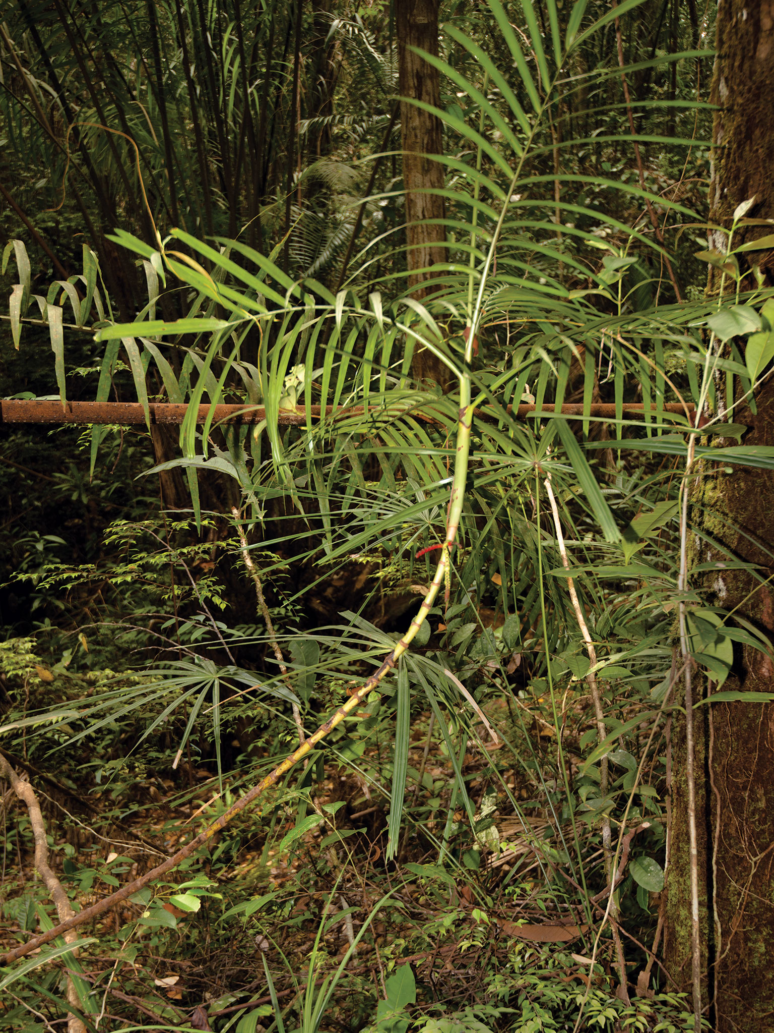 No palm tour of Bako would be complete without a few pictures of Johannesteijsmannia altifrons. This particular grove gets shot a lot (see, for example, http://www.palmtalk.org/forum/index.php?/topic/36826-sarawak-palms-in-habitat/) since it’s only about a half-hour walk from the park headquarters. Philip Arrowsmith pointed out to me that is an Areca insignis var. moorei in the first picture. You can see its oddly arranged leaflets at the base of the Joey on the right.