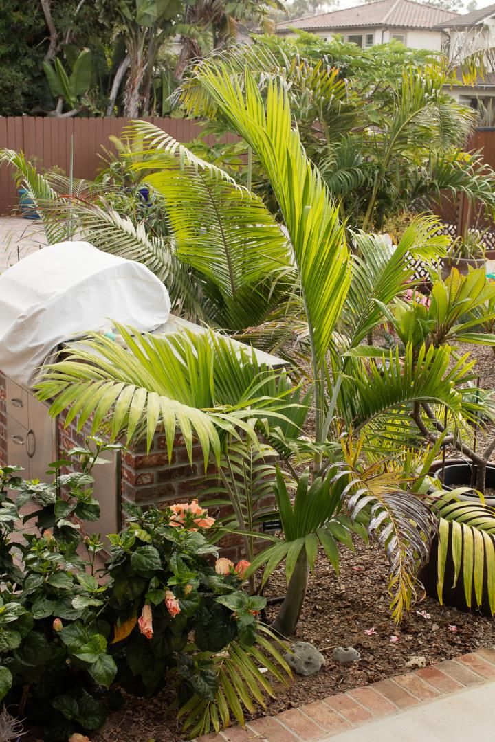 I can see why this cross would be immensely popular if they were readily available.  I can only hope that someday when my Dypsis cabadae and leptocheilos which are in relatively close proximity, might at some point produce some hybrid seeds.  It's a ways off in time, as both my cabadae and lepto are just now showing their first rings (proximity shown in photo below).  I'm not even sure that D cabadae will set viable seed here, as my close in appearance D pembana's have never flowered even with several feet of ringed trunk.  Do you happen to know if the source of your cross was hand pollinating or if it was a natural cross?