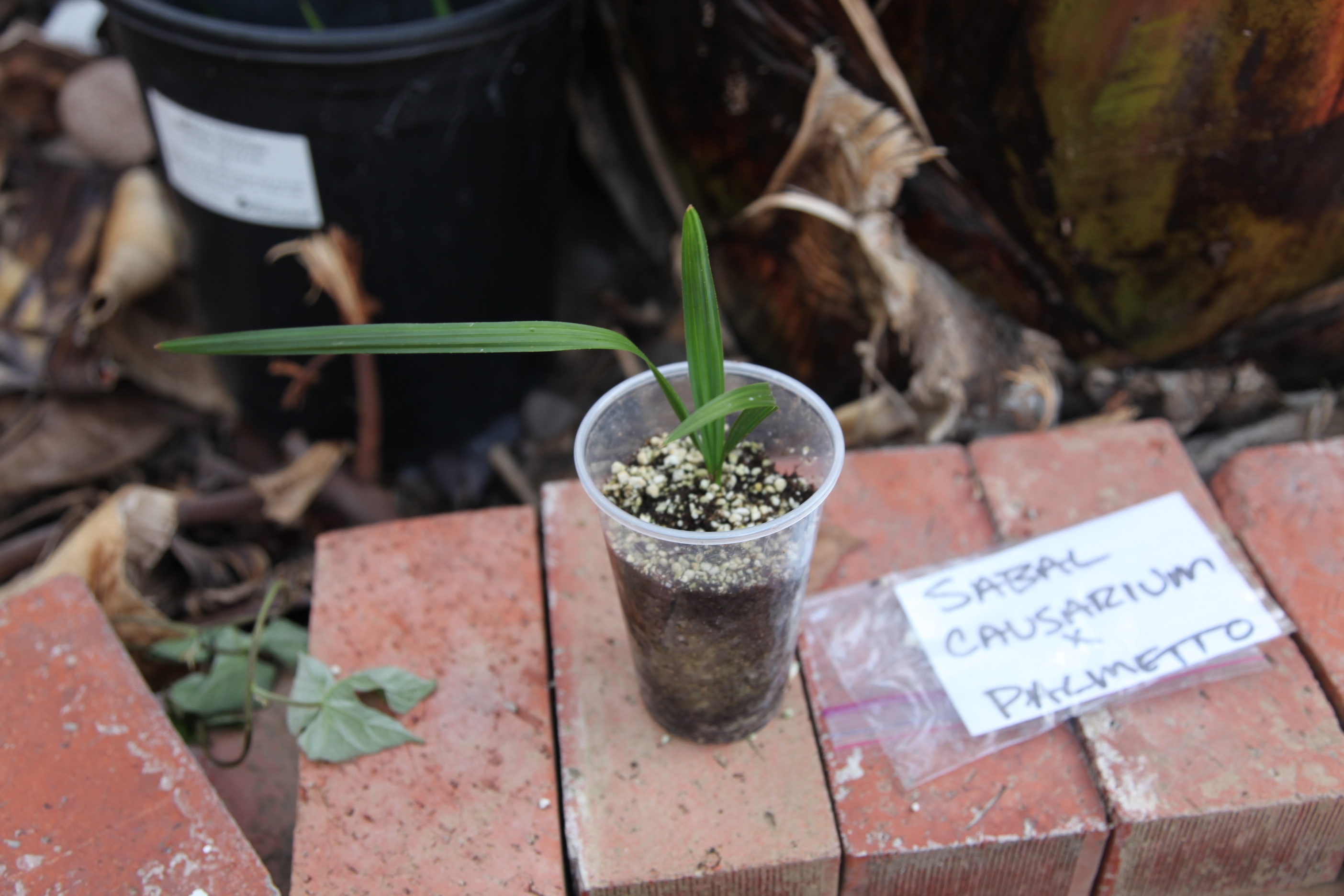 I have a few of these suspected Causarium X Palmetto seedlings from an odd looking sabal.  Kyle Wicomb graciously sent me these seeds, and I germinated them in 4/2014.  They were collected at UF Gainsville.  Here's a pic of the mother plant.