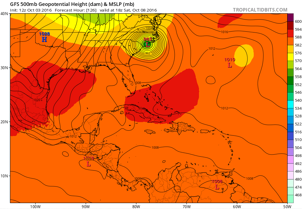 Matthew is now a cat 3 storm with winds up to 115mph, here is the latest GFS runs, still east of Florida but getting closer than the previous runs. It will get stronger and with the forecasted track being so close to Florida I would not let your guard down as a small move to the west could happen. We in Florida will be affected even if it does not make landfall here, even here on the west coast of Florida will feel the affects. The folks in Jamaica, Cuba and the Bahamas will get hit hard.