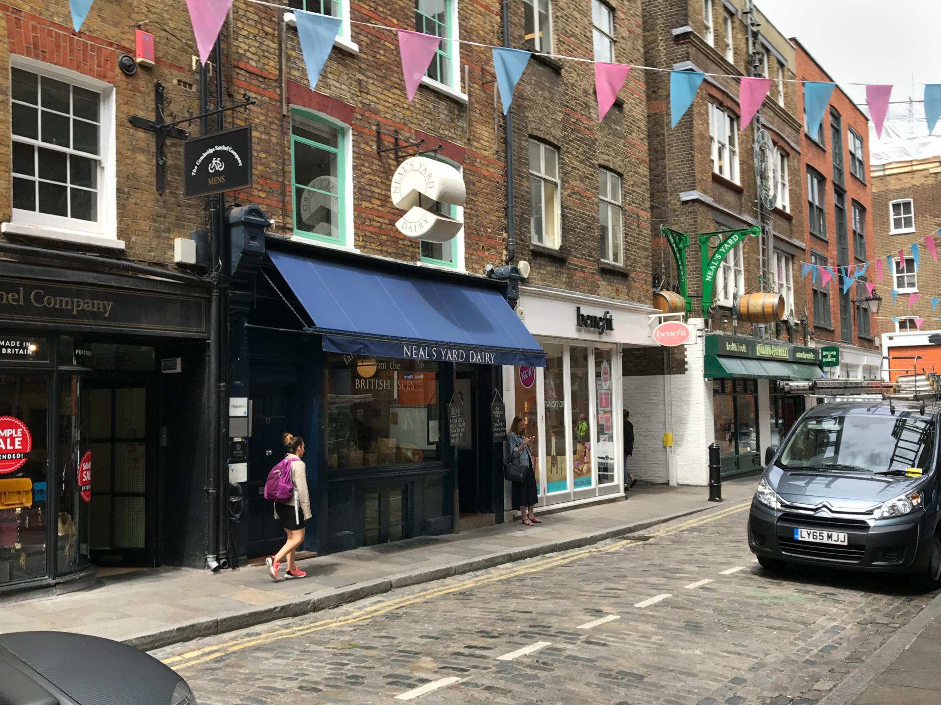 Kew's famous conservatories would be a top bet.  Of course it's a rather long Underground ride (or rail from Waterloo).  There's Trachycarpus everywhere, so of course I didn't take any pictures.  Here's a photo of where the cheese is (their other shop at Borough Market was closed at the time).