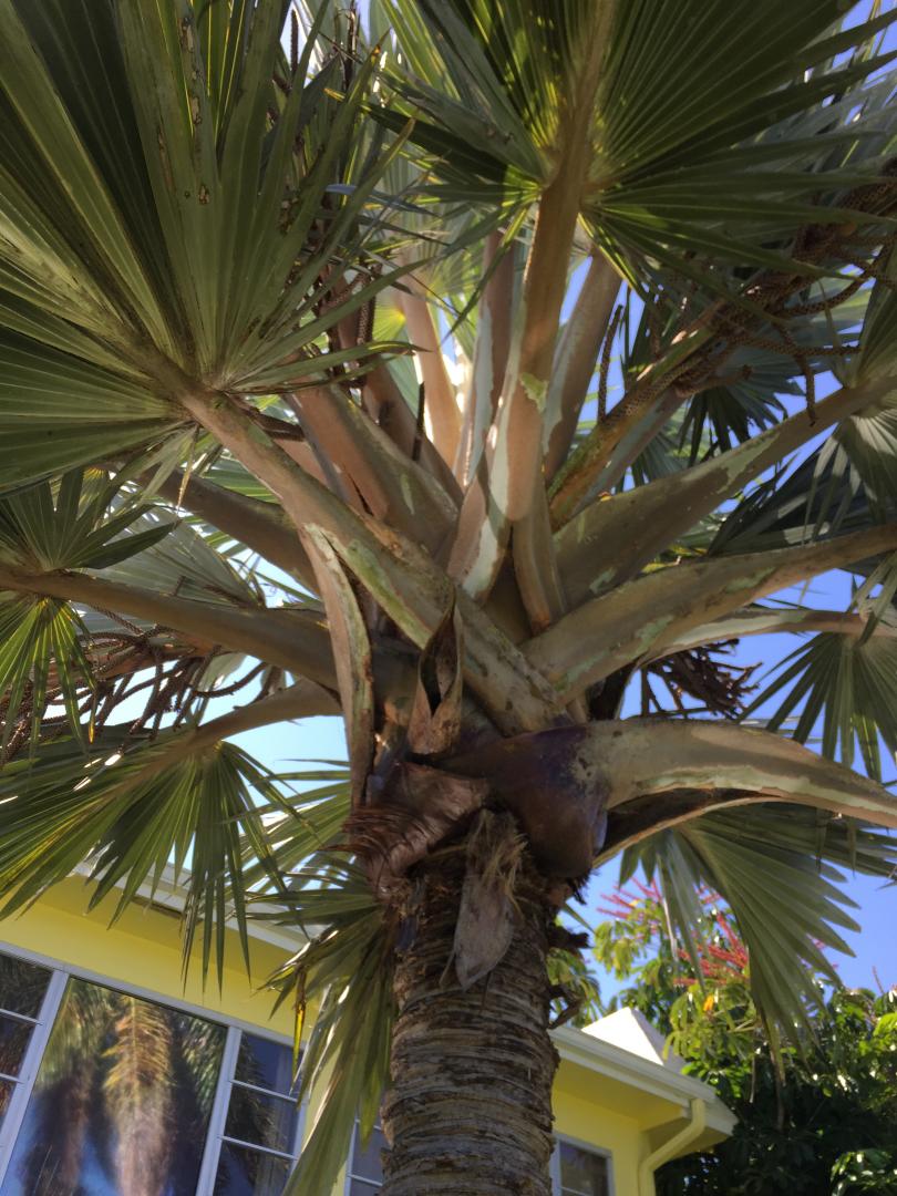 This is what I would term an old school genus frequently overlooked in South Florida. My brother-in-law had a 30 footer that was lost when his helpers over trimmed it, apparently treating it like an ordinary Sabal. I have a great deal of difficulty determining which variety (Latania loddigessii, Latania lontaroides or Lantania verschaffeltii) I am viewing when I happened by a specimen. I attempted to take a number of pictures from various directions and would greatly appreciate the board's expertise in identification.