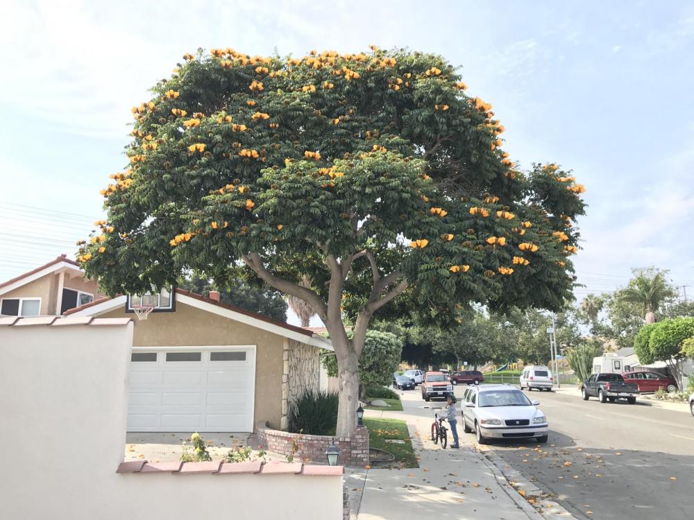 I have a couple or three of the orange version on my wild acre in Hawaii -- the "mother" tree and a few offspring.  In the wet forest, they grow very vertically, not providing the spreading canopy shown in Matt in OC's photo above. Too many plants competing for sunlight.  Although they can be invasive, I appreciate the flowers and very infrequently need to remove new seedlings.  No plans to remove the 50-60 ft. mother tree.